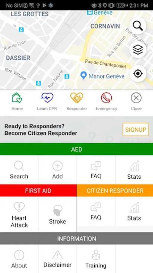 Responders integrates all the features for defibrillators mapping and evolves regularly to provide the best possible user experience. Main features are :