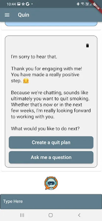 Quin is a smoking cessation chatbot
