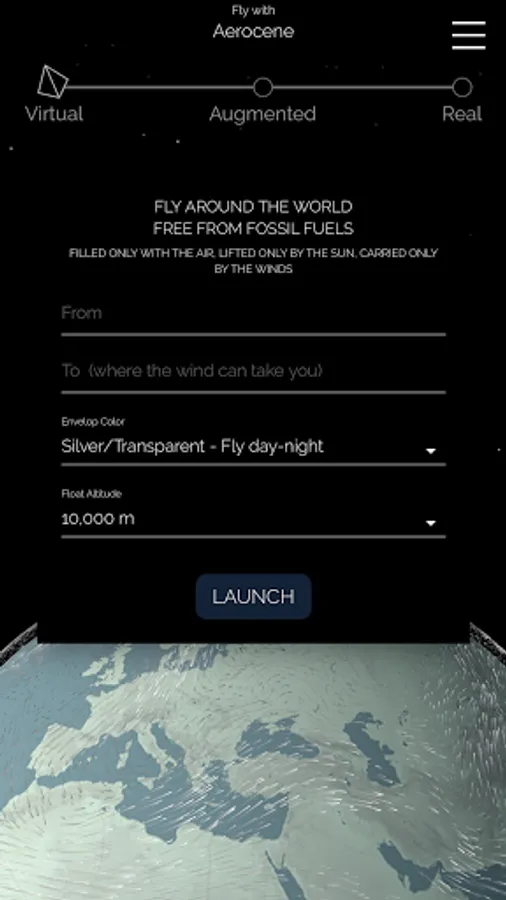 Virtual Flights enable participants to use the app as a navigational tool -planning journeys in the Aerocene era. Floating with virtual aerosolar sculptures, the flight trajectory is composed via real-time information from 16-day forecasts of wind speeds at different altitudes. A digital gallery of Aeroglyphs -signatures in the air- chart the trajectories of the 7976 (and counting) virtual flights that have taken place so far on the Aerocene App.