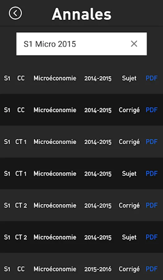 • Annals: The AESES collects the annals of the majority of your subjects, from L1 to L3, and makes them available to you directly from your mobile.