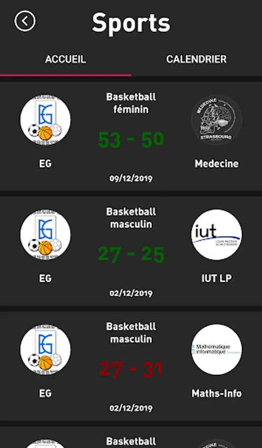 • Sport: The FSEG is part of the most sporting faculty in Strasbourg, and often ends up on the podium in university championships! Find the matches to come and the results of your favorite teams in the Sport tab!