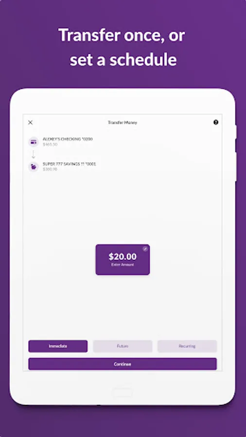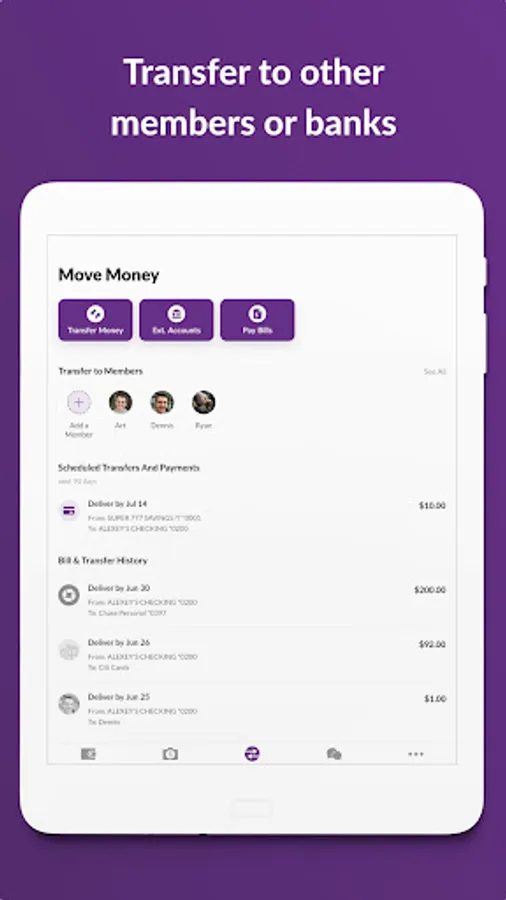 • Set a checking account to round up all debit card purchases to the next whole dollar, then automatically transfer the difference to your savings; manage Stash Your Cash from the Move Money screen