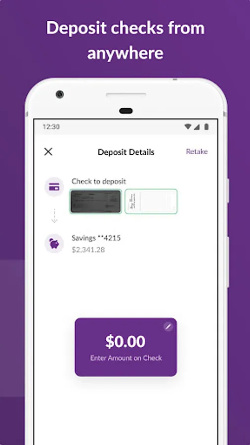 • Deposit checks from anywhere, and immediately access up to $1,500 of the funds