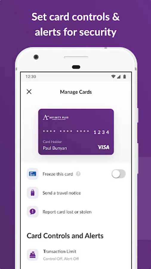 • For extra security, peace of mind and help with budgeting, use Card Controls & Alerts to set spending limits (per transaction or monthly) for your debit and credit cards; or just get transaction alerts for awareness