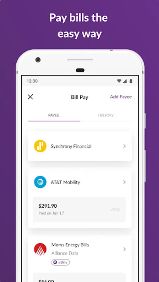 • Enroll in Bill Pay from the app, and see your eBill amounts and due dates