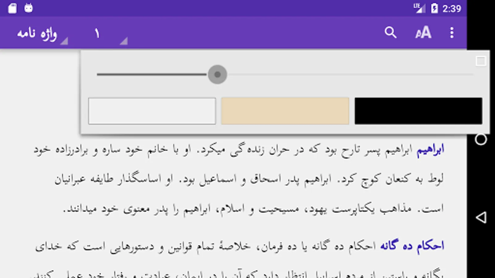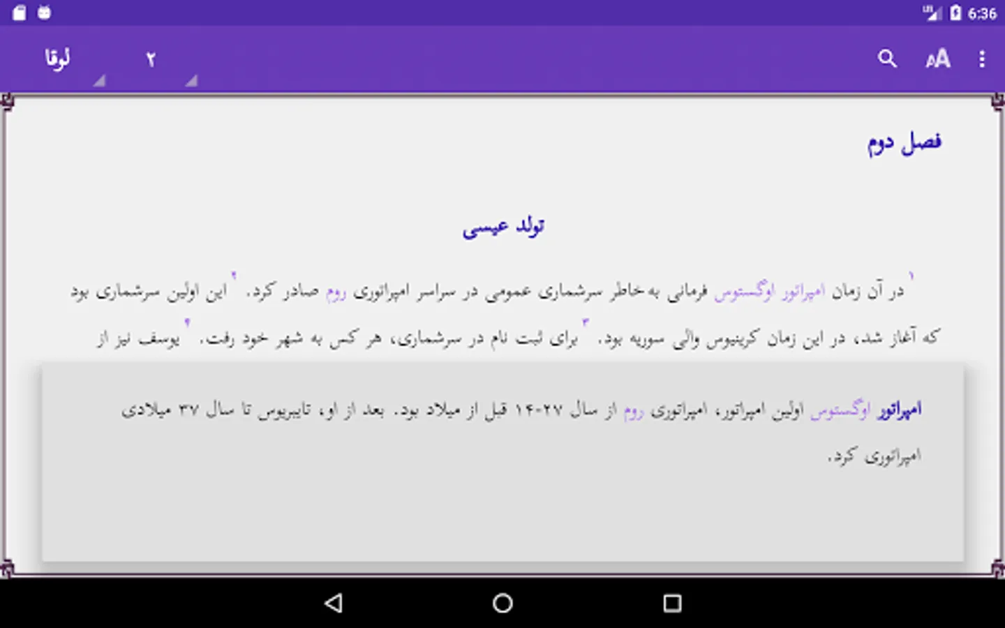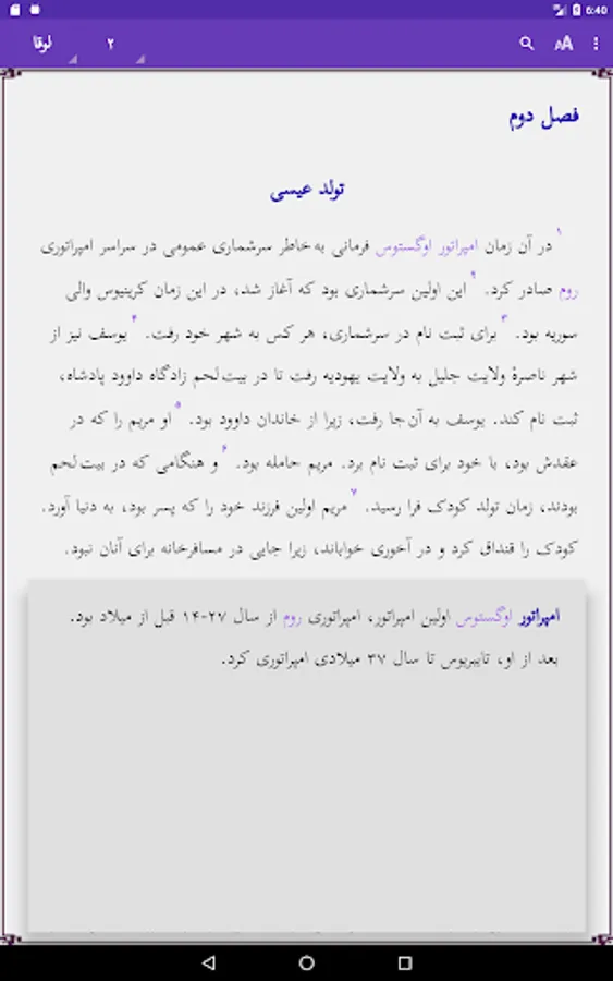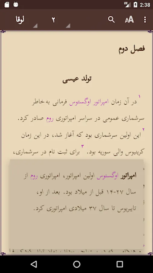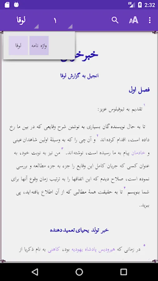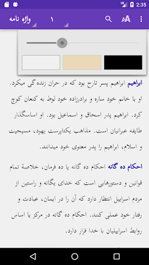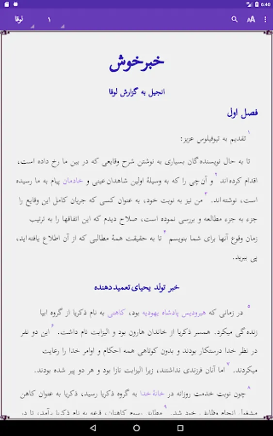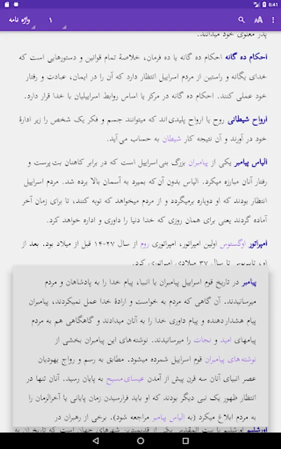 It is simple to browse the 24 chapters of the book or read the glossary. Pinch zoom and swipe left/right are supported. Touching a red word will give you the glossary explanation in a window. Touch the screen 2 seconds to select a word or sentence, and copy or share this with others. Use of the selected word in the Search option is possible. Easy to adjust size of the screen font or change the background color. The text is downloaded on your phone, so no internet access is needed. More links to other applications are provided.