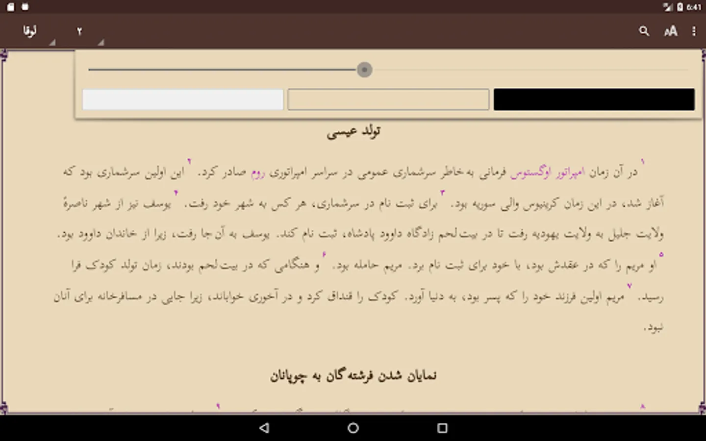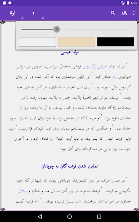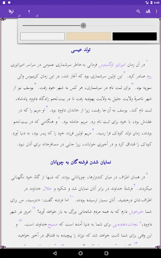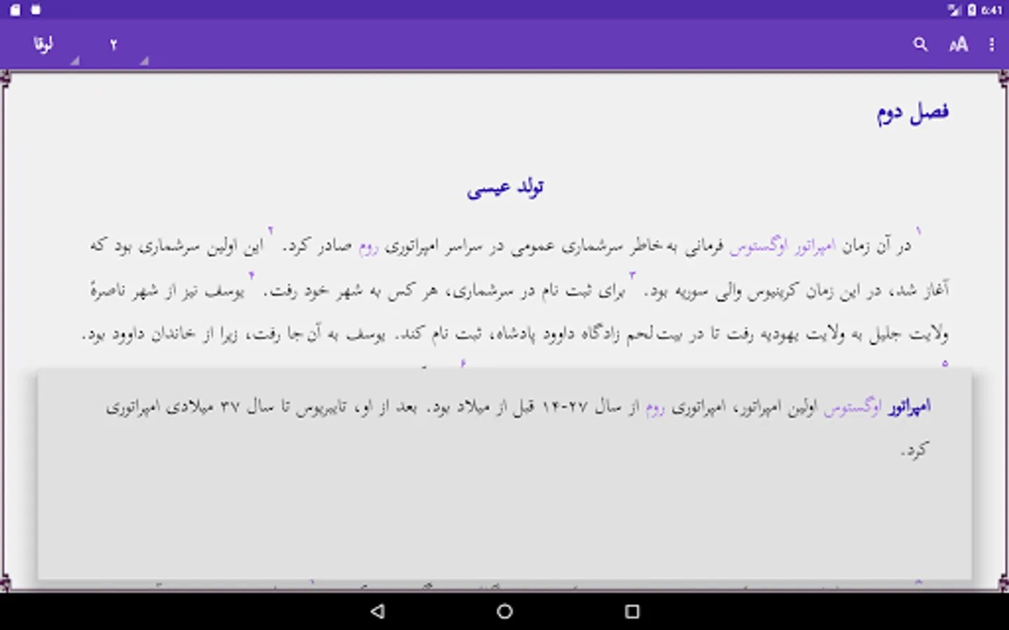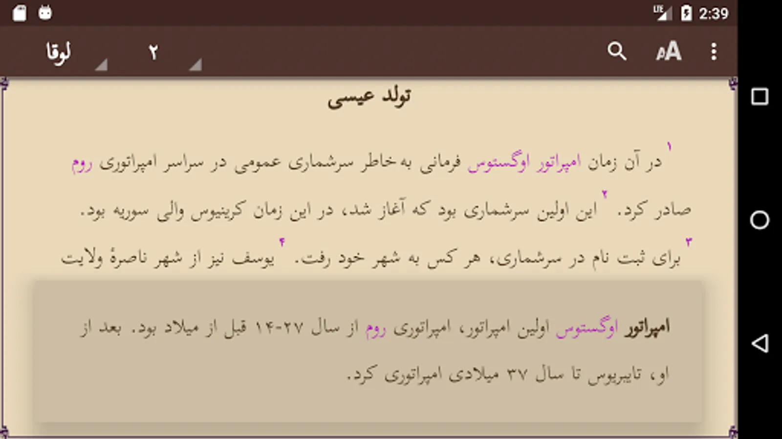 It is simple to browse the 24 chapters of the book or read the glossary. Pinch zoom and swipe left/right are supported. Touching a red word will give you the glossary explanation in a window. Touch the screen 2 seconds to select a word or sentence, and copy or share this with others. Use of the selected word in the Search option is possible. Easy to adjust size of the screen font or change the background color. The text is downloaded on your phone, so no internet access is needed. More links to other applications are provided.