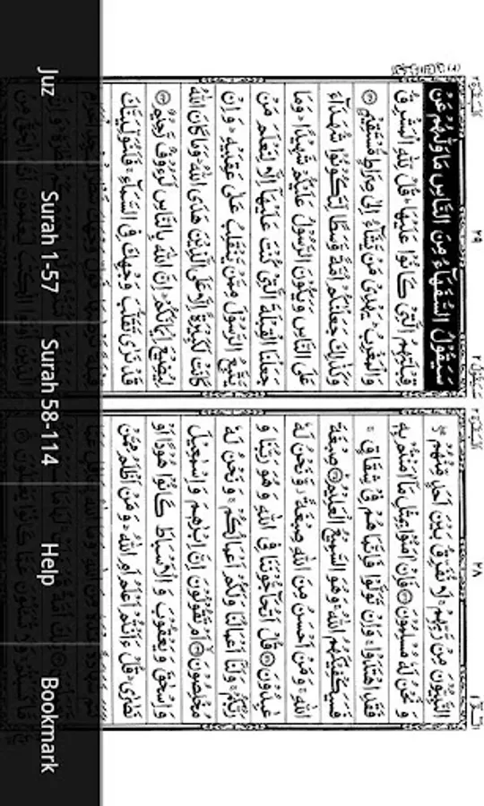 The Holy Quran in Arabic IndoPak style script optimised for landscape viewing two-pages at a time on devices with a WVGA (800x480 pixels) or larger screen.