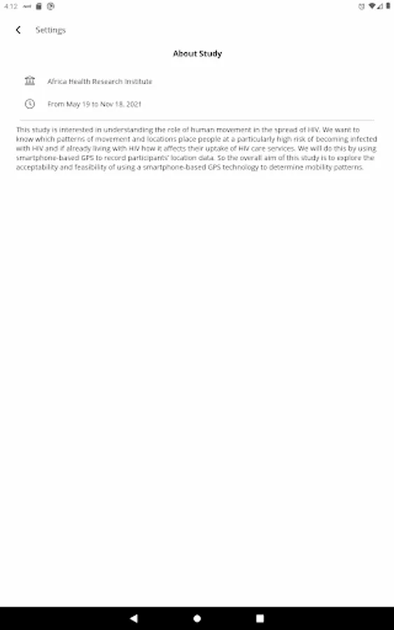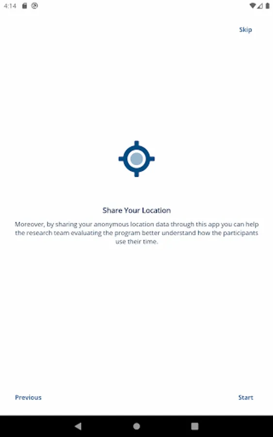 During your participation, you occasionally will be asked short survey questions. Depending on the study, you also might be asked to provide your location information or exercise habits. None of these are mandatory and you can drop out at any time. Ethica always reminds you of the data you are providing.