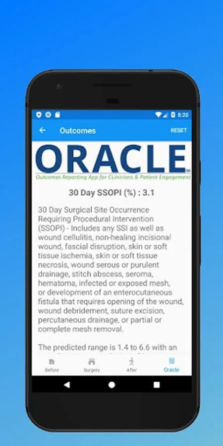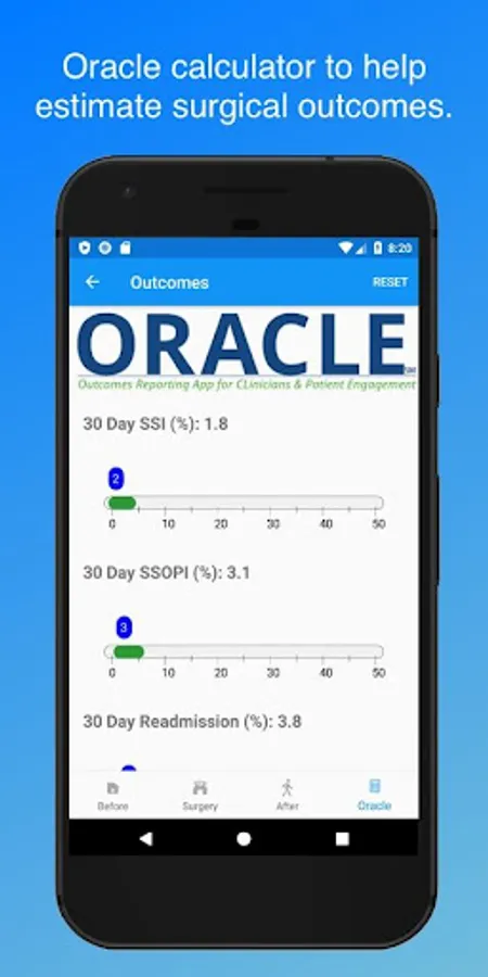 The Oracle surgical calculator provides key estimated surgical outcome risks for patients undergoing ventral hernia repairs.