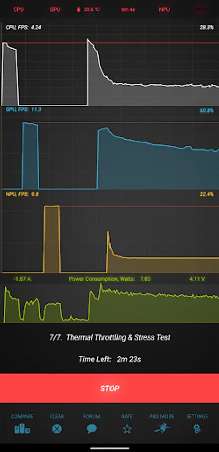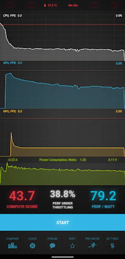 The Burnout Benchmark is a professional tool designed for an extensive computing performance, thermal throttling behavior and power efficiency evaluation of mobile CPUs, GPUs and NPUs. This is the only available tool on the market capable of loading different SoC components simultaneously to analyze their performance sustainability and energy consumption under full load. Many more possibilities are available in the PRO Mode that allows to explore the interaction between different SoC parts and evaluate their performance sustainability under a long-term workload.