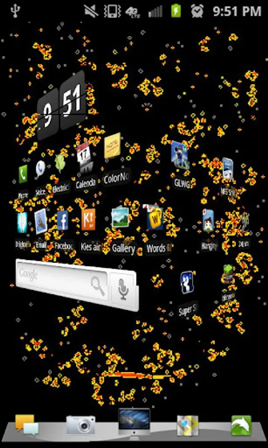 This retro live wallpaper will satisfy your inner geek, or pyromaniac. We don't judge. It uses a simple and fast algorithm (Conway's Game of Life) to create mesmerizing fire-like patterns wherever you touch the screen. You'll see flames, embers, fireballs, ashes, and occasionally the elusive pulsar.