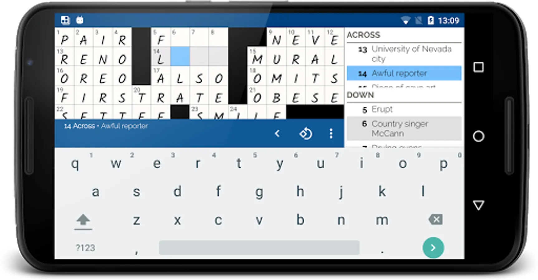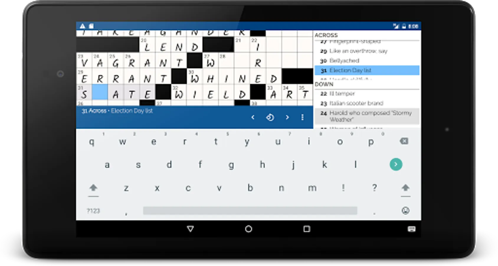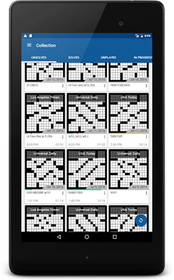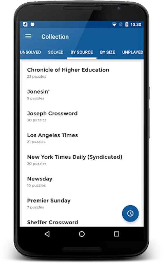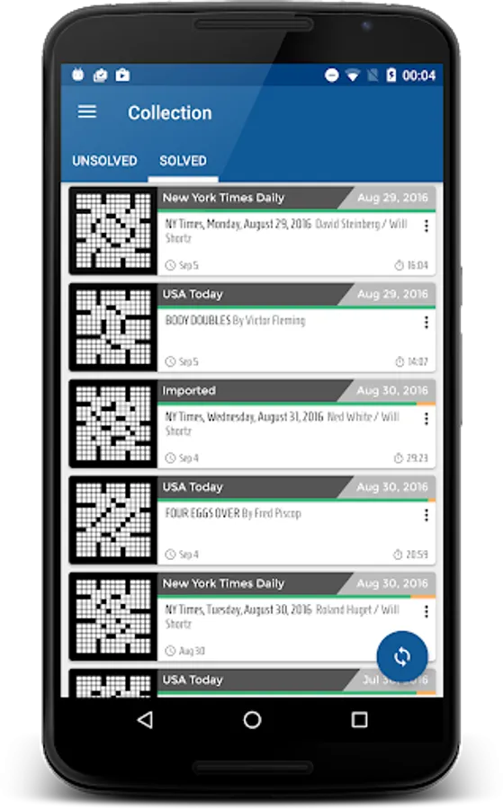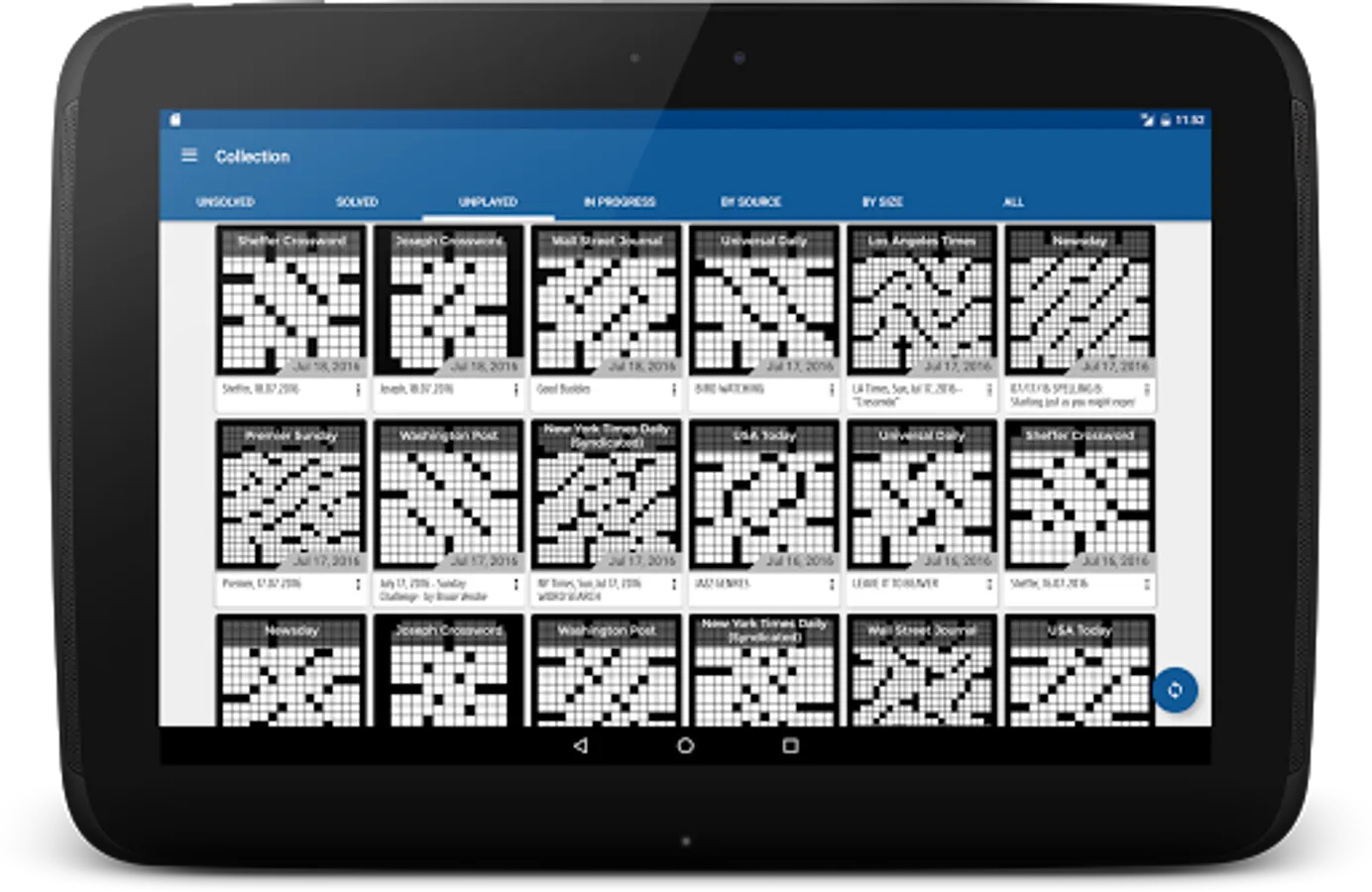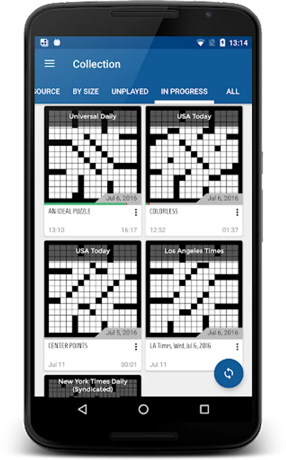 Crossword app for Android with a modern, intuitive interface. Quickly and effortlessly download and play puzzles from: