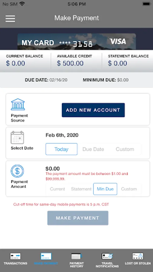 • Make a payment credit card.