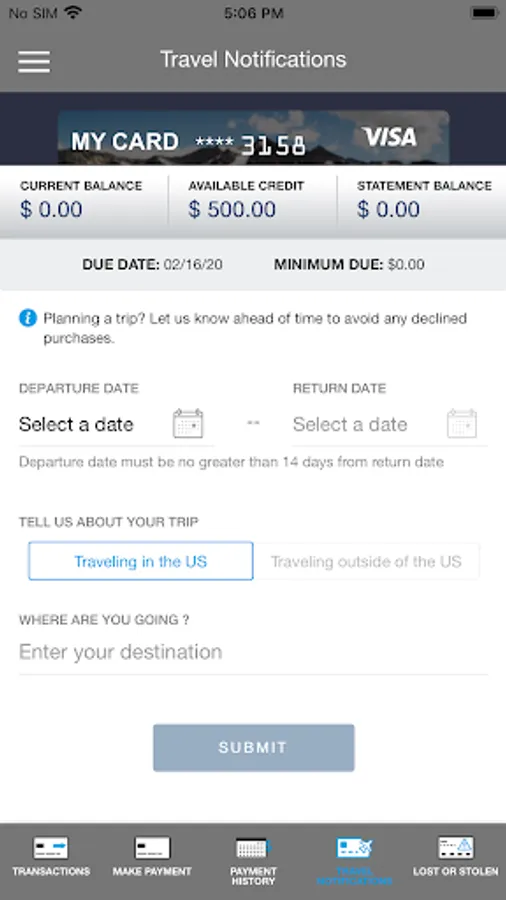 • Set up travel notification.