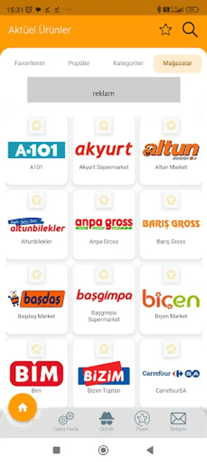 * You can add the market or store you want to your favorites in our bim a101 current products catalog application.