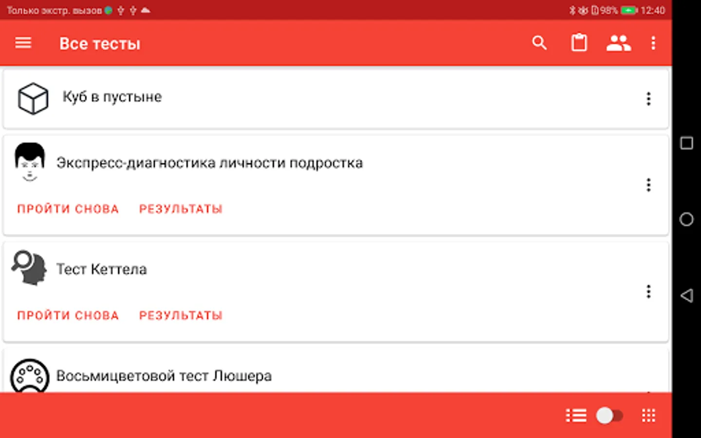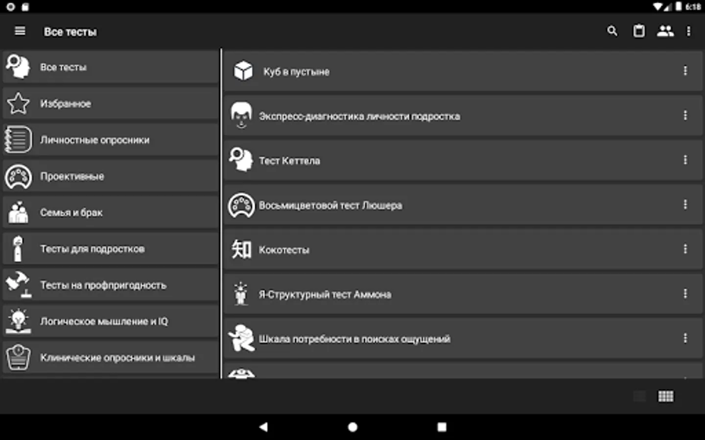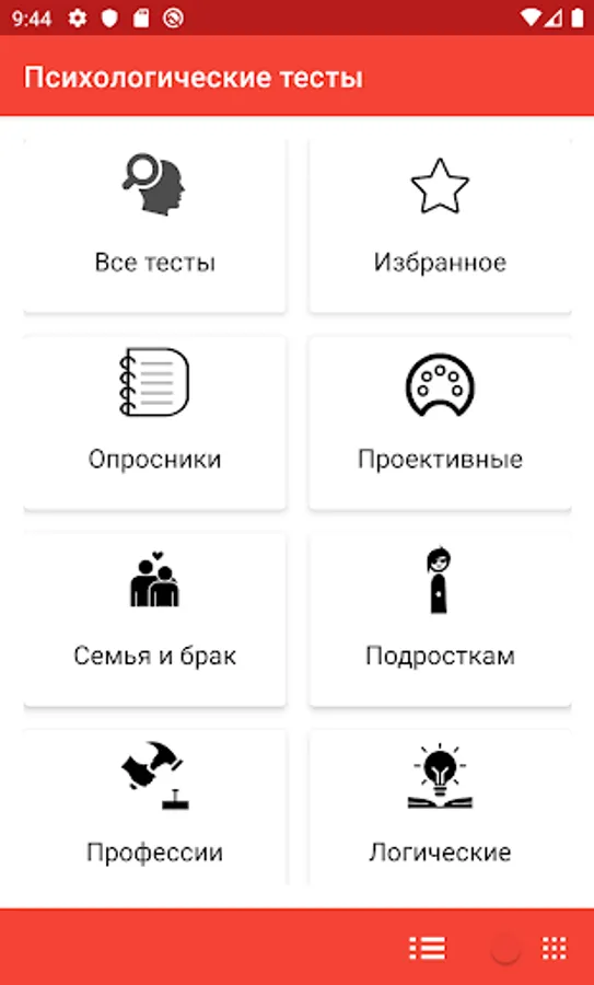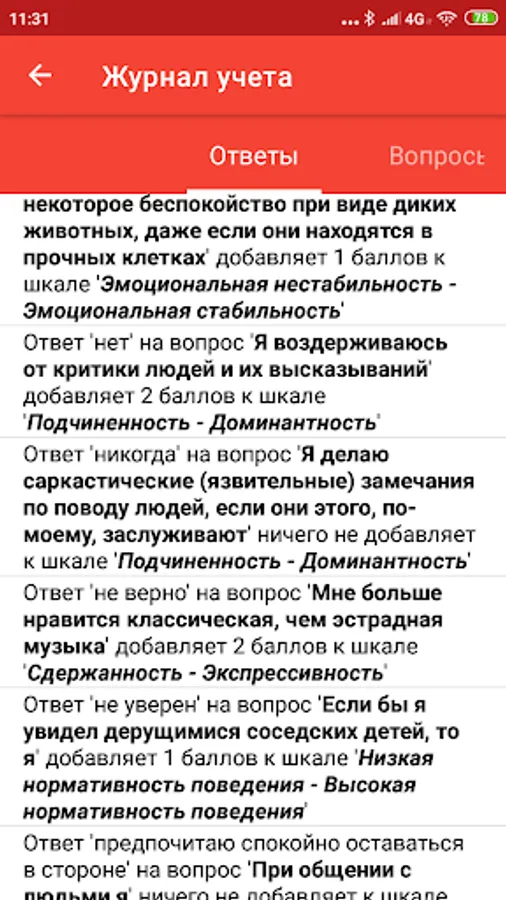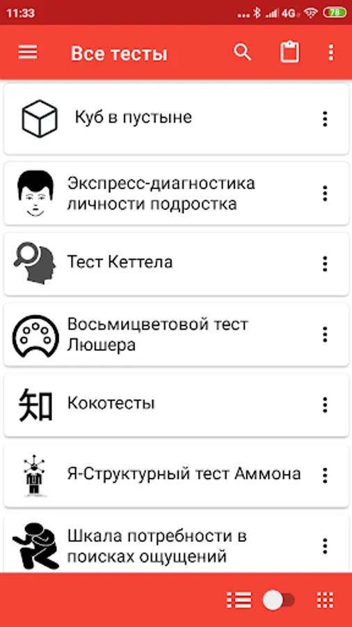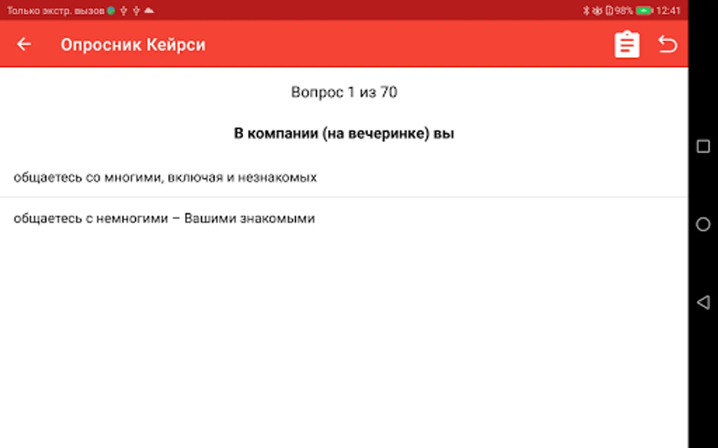 Collection of psychological tests: Test Cattell, Eysenck questionnaire, questionnaire marital satisfaction, etc.