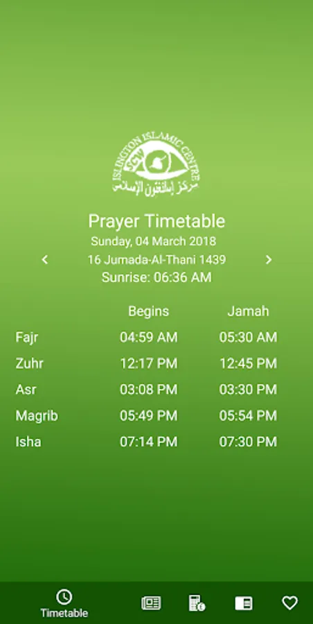 Services provided by the centre include the congregational five daily prayers, including Friday Khutbas, Quranic Studies Madrassah, Tafseer Halaqaas, Youth programs, Ramadan Iftar & Taraweeh, Eid programs, Saturday and Sunday school, Sisters Circle, Supplementary School, Outreach & Interfaith programs and many more activities.