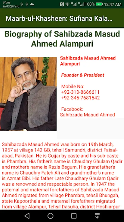 The great Sufi poet Hazrat Maulvi Ghulam Rasool Alampuri was born on Monday 29th January 1849 at village Alampur, tehsil Dasuha, district Hoshiarpur, India and he demised on 7th March 1892 at the age of 43 years only.He is Gujjar by caste and sub-caste was kisana. His father’s name was Chaudhry Murad Bakhsh. His mother’s name was Mohtarma Rehmat Bibi. The mother of Hazrat Maulvi Sahib has died when he reached at the age of 6 months only and his father died when Hazrat Moulvi Sahib was only 12 years old. Hazrat Maulvi Sahib was the only child of his parents. Hazrat Maulvi Sahib got married thrice. He had two daughters, Ayesha Bibi and Khadija Bibi. Sahibzada Masud Ahmed is a son of Razia Begum who is the maternal daughter of Hazrat Maulvi Sahib and Sahibzada Masud Ahmed is a maternal grandson of Hazrat Maulvi Sahib. He played a historical role and laid the foundation of Hazrat Maulvi Ghulam Rasool Alampuri Trust on Friday 30 November 1990. Two books of Sahibzada Masud Ahmed were published on life history and work of Hazrat Maulvi Sahib. The first book with the title of “Doonghey Raaz” (A study regarding Moulvi Ghulam Rasool Alampuri) was published in 1999. The book is included in the course of M.A level in Pakistan.His second book with the title of “Moulvi Ghulam Rasool Alampuri: Personality and Work” has published by the “Pakistan Academy of Letters” in 2011. The book named “Moulvi Ghulam Rasool Alampuri: Personality & Works” and the same was translated into Gurmukhi script by the “Language & Literature Department” Patiala, India and published it.The work of Hazrat Maulvi Ghulam Rasool Alampuri has also been included in the curriculum from matriculation to MA level in Pakistan. Two PhDs have also been completed on him. His available books are Daastan Ameer Hamza, Rooh ul Tarteel, Ahsan ul Qasas, Masla e Tauheed, Seeh Harfi Hulya Sharif (P.B.U.H), Chithian, Seeh Harfi Sassi Punnu, Chopat Nama, Pandh Nama and Maa’rb ul Khashien.