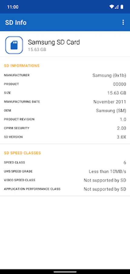 * Only available on devices with 4.9+ kernel version. Regardless of the kernel version some Huawei, HTC and Nvidia devices might still be be able to show the SD Class Speed - some Motorola devices should be able to show the SD Class Speed and the UHS Speed Grade of the SD Card.
