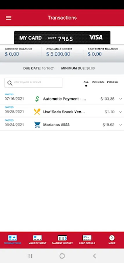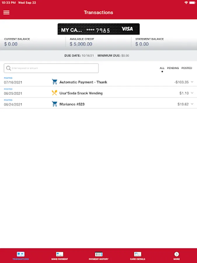 • View recent and pending transactions.