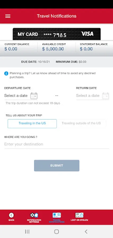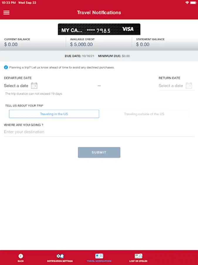 • Set travel notifications.