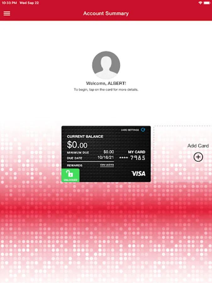 • View rewards points for participating cards.