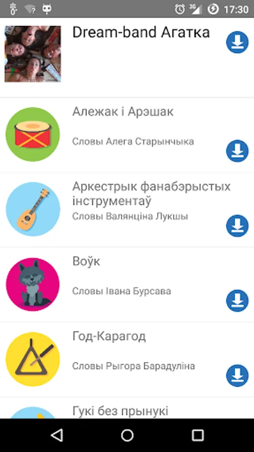Listening to music dream-band "Agatka" hard to sit still, because it is a solid fun and mischief! The "country of fairy tales", you will find songs to the words of Belarusian poets (R. Borodulin, I.Bursava, A.Hodonovicha et al.) As well as a collection of thematic songs, workouts.