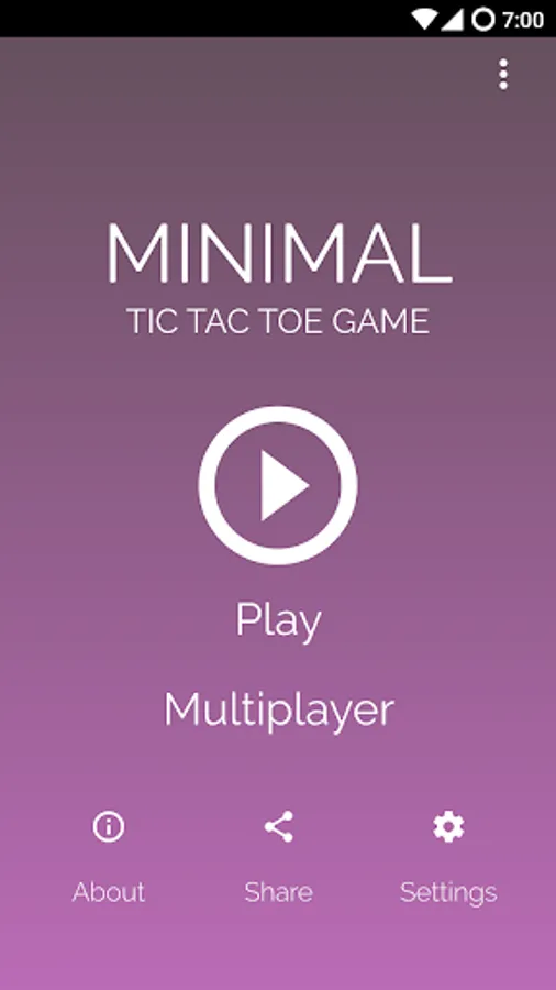 A simple game for children and adults to have fun, practice their strategy skills and kill some time. Minimal3T allows you to play Tic-Tac-Toe on your Android phone with a modern and pleasing visual design for free.
