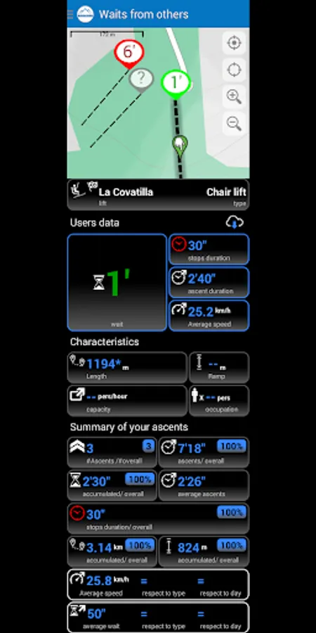 Non-stop skiing!. We show you where are the fastest lifts in your favorite ski resort, where there are fewer lift line wait time, tracks you have not yet traveled throughout the domain. Do not wait in the queues of the ski lifts, use the fastest and ski!