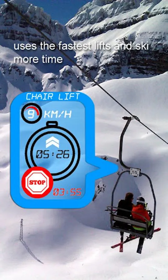 - When you approach the entrance of a ski lift and you stop, the system will inform you about the possible waiting and certain data of the lift, as the duration of the ascent