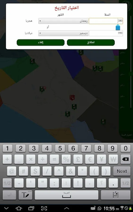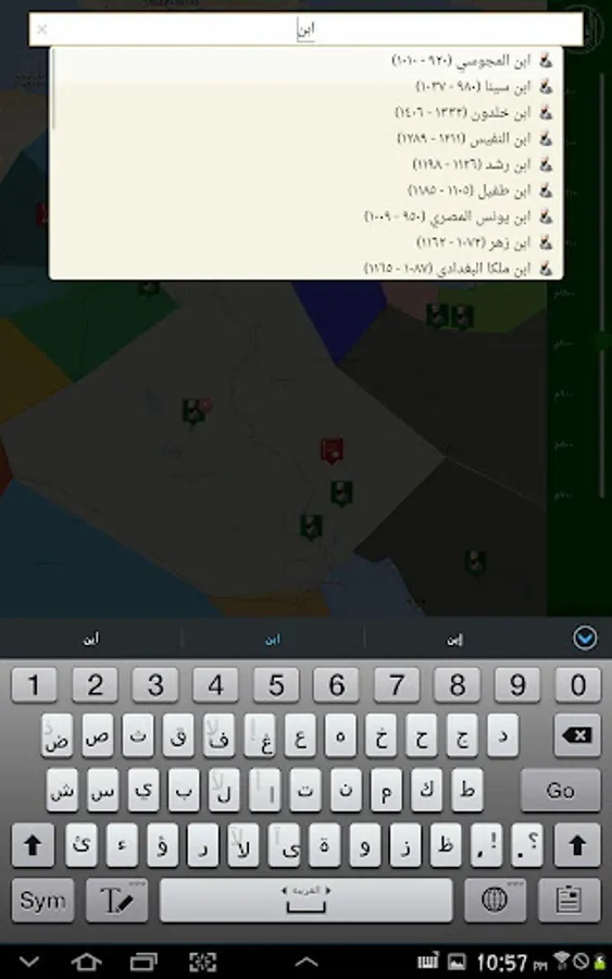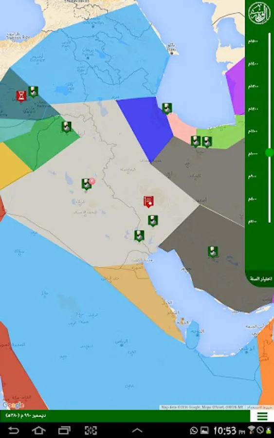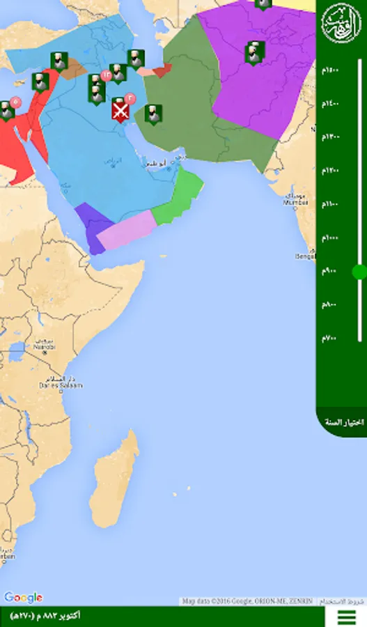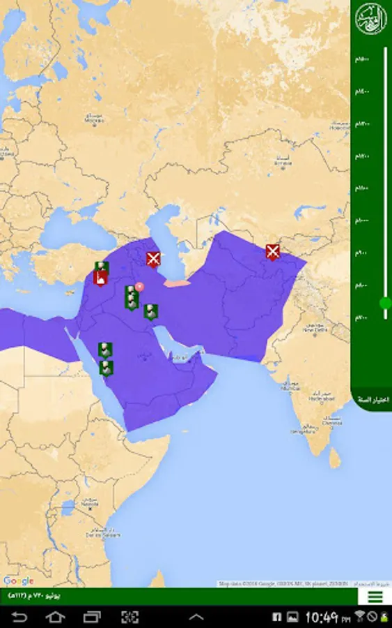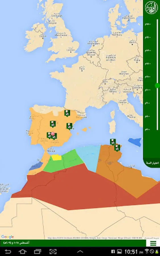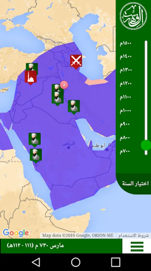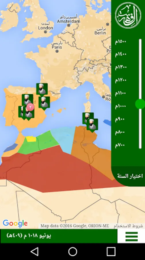 Al Fehrest (the Index) is an application that displays the whereabouts of the scientists of the Islamic civilization starting from the year 700 AD until the year 1500 AD in the form of a timeline linked to a map. It also displays the breadth of the Muslim states throughout that period. Unfortunately the application is only in Arabic.