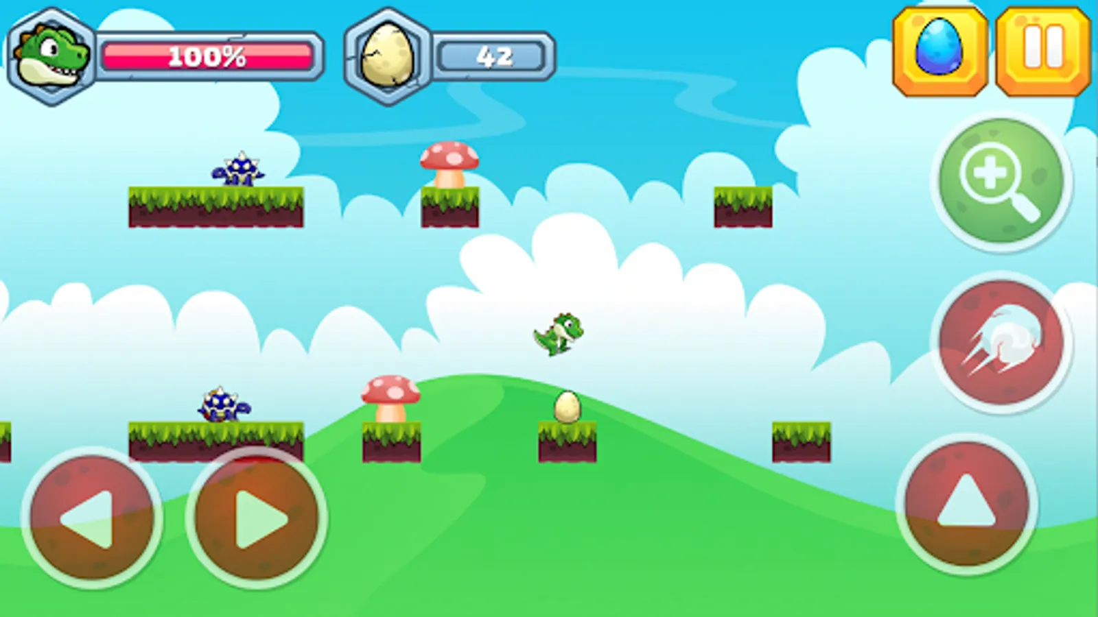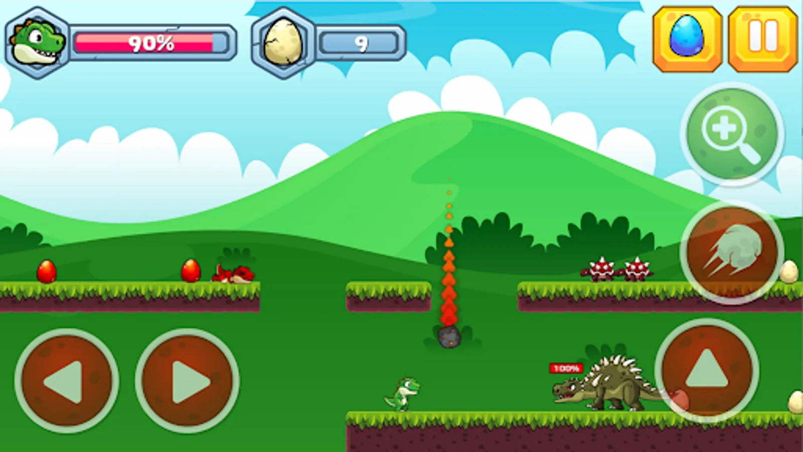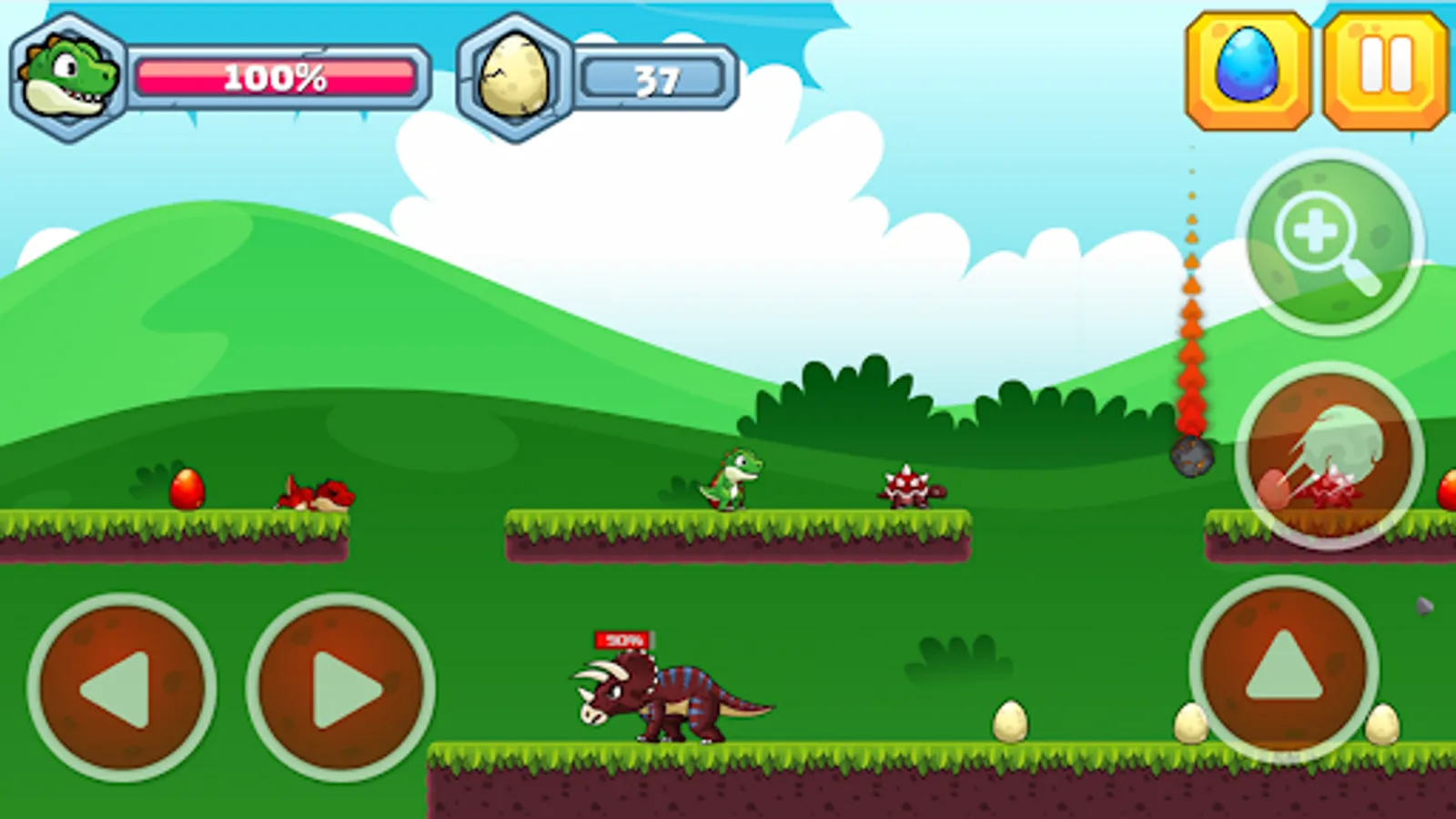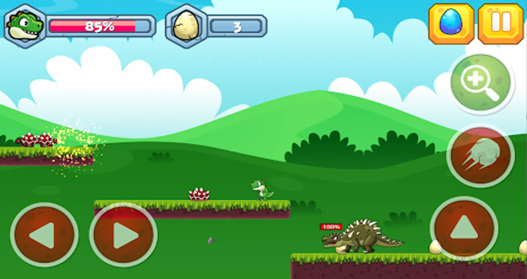Welcome to the Dino's world! Defeat the enemy dinosaurs, collect the eggs and reach the cave!