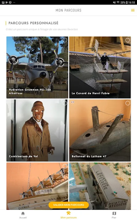 Designed by the teams of the Musée de l'hydraviation in partnership with students and teachers from the University of La Rochelle and with the support of the DRAC Nouvelle-Aquitaine, this application offers an intuitive menu very easy to use, within reach of all. From the menu, the visitor navigates on different tabs.