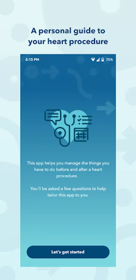 The Take Heart app guides you through the things you need to do before and after a heart procedure.