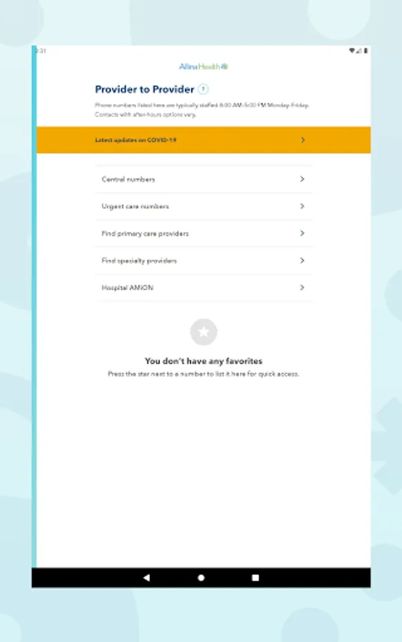 The Provider to Provider app facilitates direct personal connections across care providers. Connect either to a provider directly, or to an administrator who can coordinate a callback. App also includes links to shared resources for scheduling and provider communication.