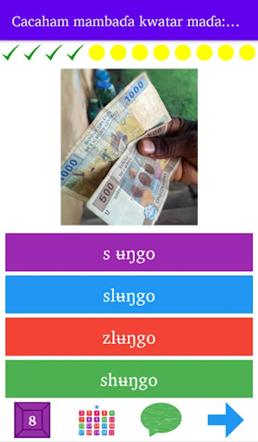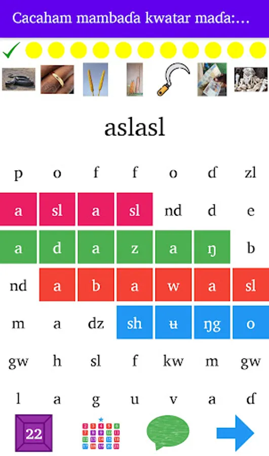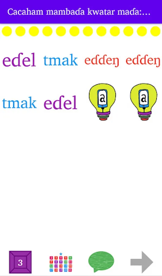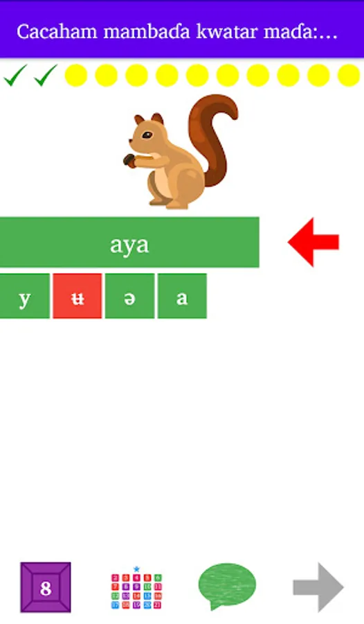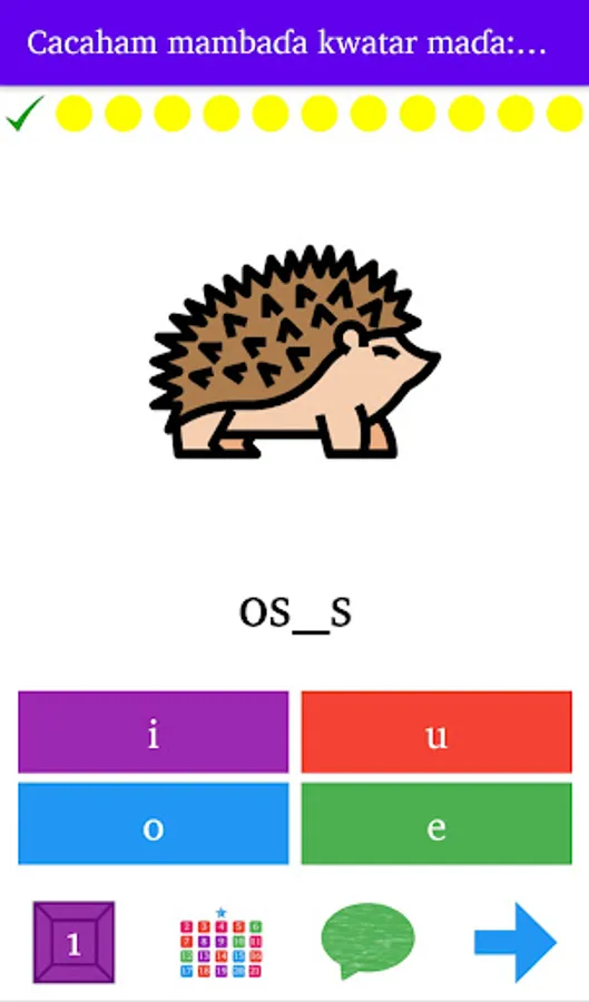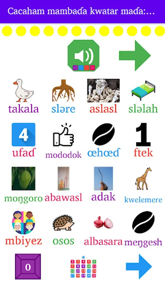Cette application propose plus de 20 jeux pour aider les locuteurs de la langue mada à apprendre l'orthographe correcte des mots courants de leur langue. Vous pouvez apprendre l'orthographe d'environ 100 noms de base en regardant l'image, en écoutant la prononciation du mot et en voyant l'orthographe. Vous pouvez ensuite vous tester en utilisant les différents jeux. Ils vous proposent des défis tels que l'identification de la lettre ou du son qui commence un mot, de la lettre ou du son manquant, la construction du mot à partir d'options de lettres, le jeu de « mémoire » avec des cartes de mots et d'images, ou la saisie de l'orthographe correcte du mot entier. Les jeux vont du plus facile au plus difficile. Téléchargez l'application, puis jouez hors ligne. Il y a de la place pour 12 joueurs différents pour suivre leur progrès. Donnez à vos enfants du temps pour jouer cette application mada afin qu'ils puissent, eux aussi, apprendre à lire et à écrire leur langue ! Ils vont aimer !