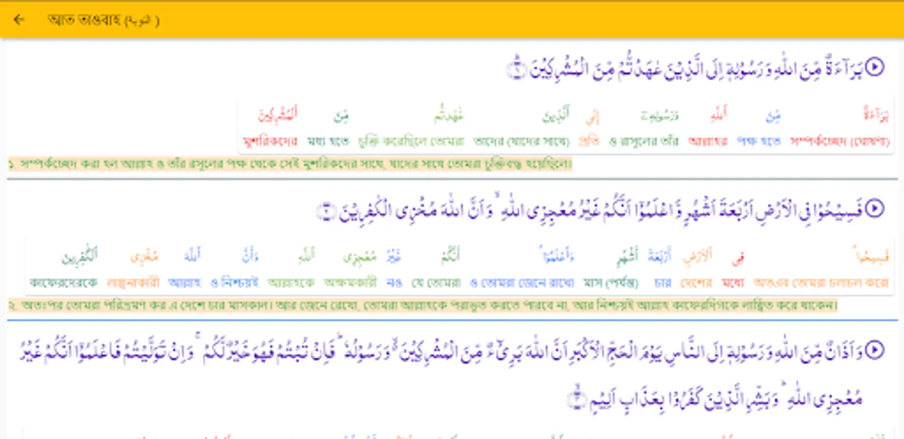 Al-Quran app (Bangla) is a multi-platform application (Android, iOS, Web) developed for advance Qur-an learners, especially for Bangla language base Muslims of the sub-continent.