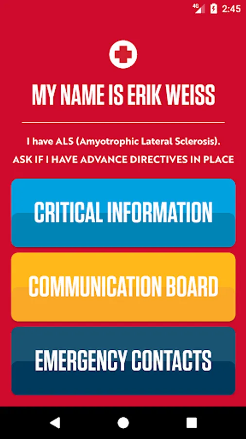 The Key Medical Information app provides medical personnel with critical information to care for a person with ALS (amyotrophic lateral sclerosis) during an emergency. In addition to medical dos and don’ts, the app provides a communication board and emergency contact fields for users to reference.