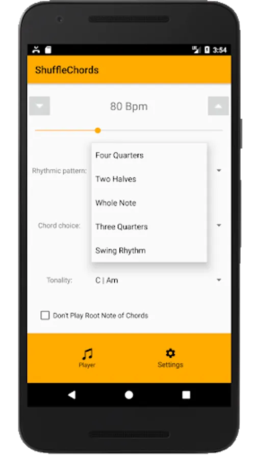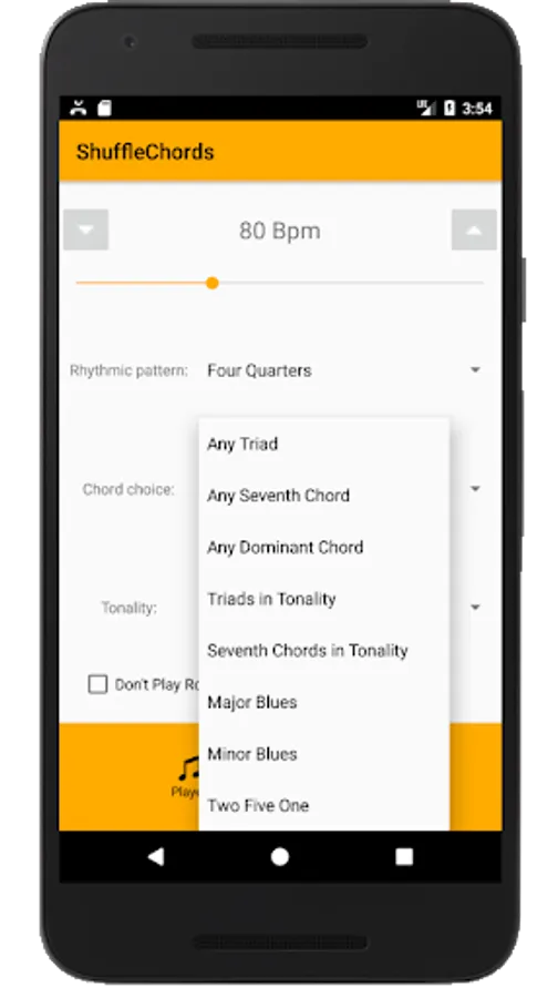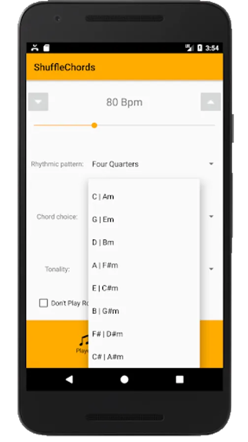ShuffleChords is a training tool for musicians. It plays random sequence of chords that can be customized in different ways, for example by limiting the chords to a single key, as well as for rhythm and speed. As a bonus some fixed sequences are also included (minor and major blues, II-V-I)