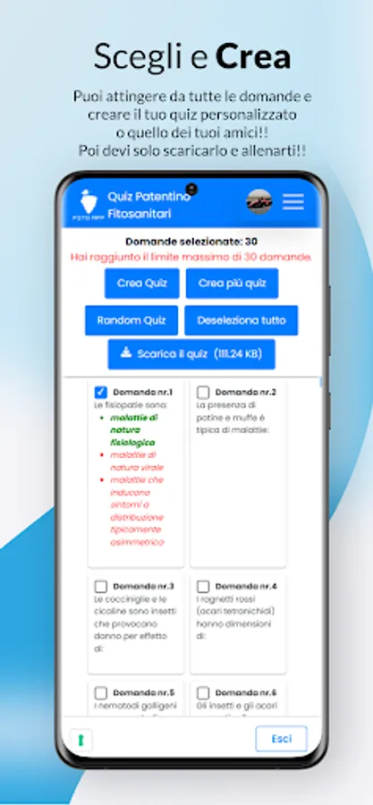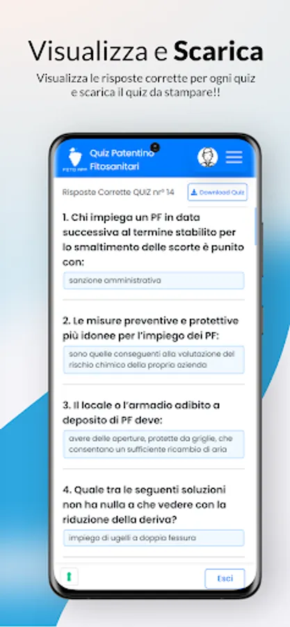 The purpose of this app is to help students who want to obtain the "Certificate of qualification for the purchase and use of plant protection products", also known more informally as phytosanitary products or agropharmaceuticals.