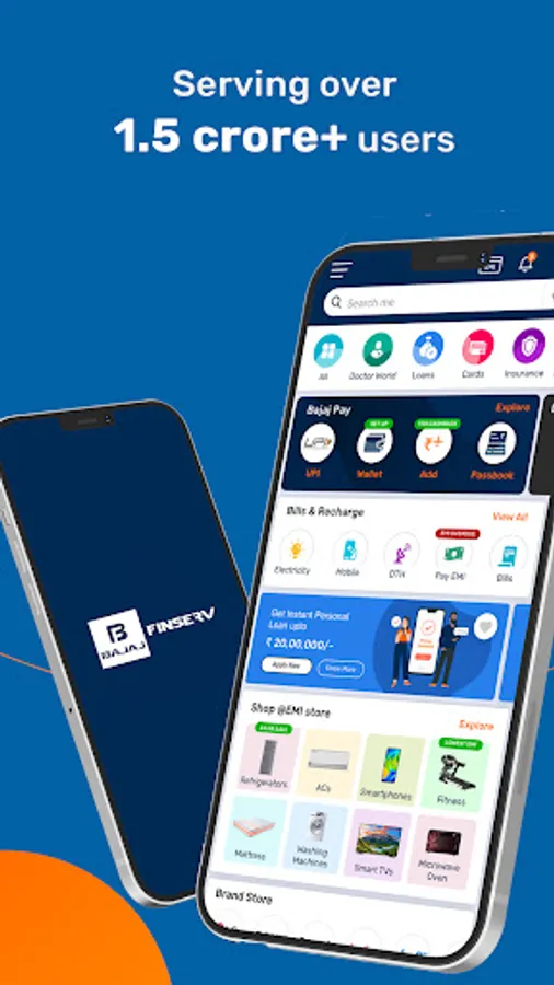 Bajaj Finserv App is trusted by 40 million+ customers all over India for their financial and payment needs. With this app, you can apply online for personal loan, home loan, gold loan, etc. You can shop online from 1 million+ products at no-cost EMI, manage investments, get insurance, and do much more. You can also easily pay all your utility bills, recharge your mobile and DTH services, and transfer money using BHIM UPI.