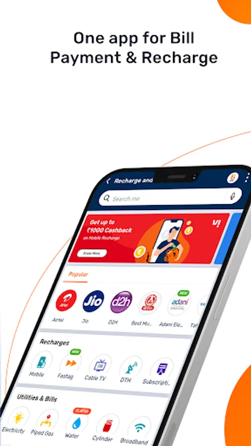 Find all top billers such as Jio, Airtel, Vi etc. for mobile recharge on Bajaj Finserv App. Earn cashback on mobile recharge using the Bajaj Pay UPI & use it for future bill payments.