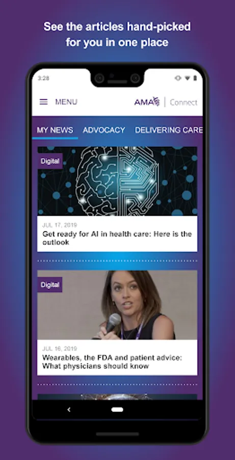 The AMA Connect app provides access to world-class clinical research, award-winning tools & resources, and the latest news from the American Medical Association – it’s the best of the AMA, right in the palm of your hand.