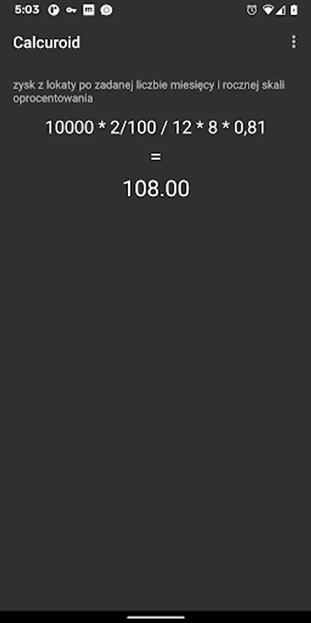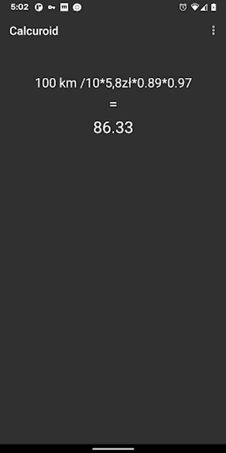 The application allows you to enter your own formulas and use them later for your own calculations. The results are shown in a detailed form as in the attached screenshots.