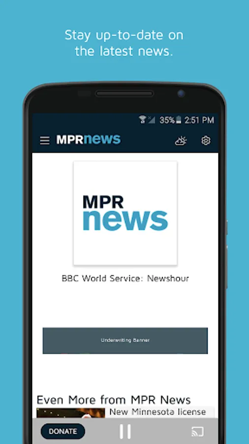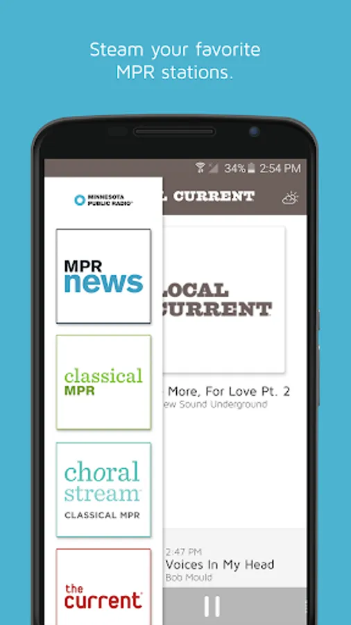 Listen to member-supported Minnesota Public Radio anywhere you go with the MPR Radio app. With this app you can stream the live broadcasts from MPR News, Classical MPR, and The Current and additional streams such as Radio Heartland, Local Current, Rock the Cradle and Choral Stream.