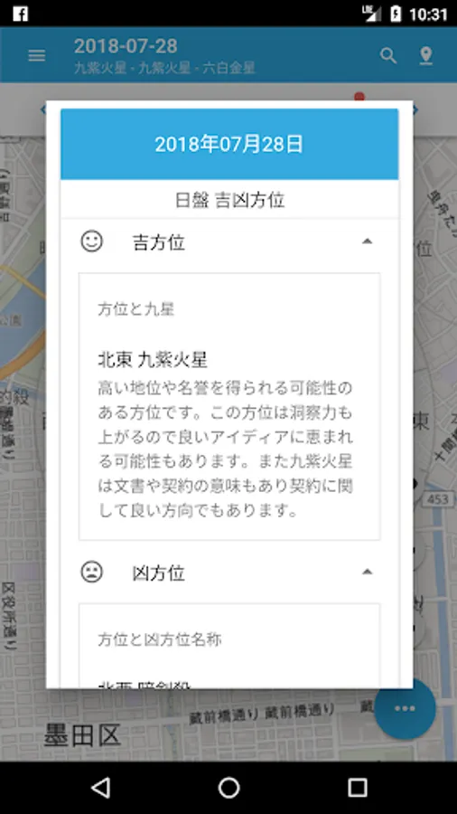 このアプリさえあれば、どのタイミングでどの方角へ向かえば、どのような作用があるかカンタンに調べられます。