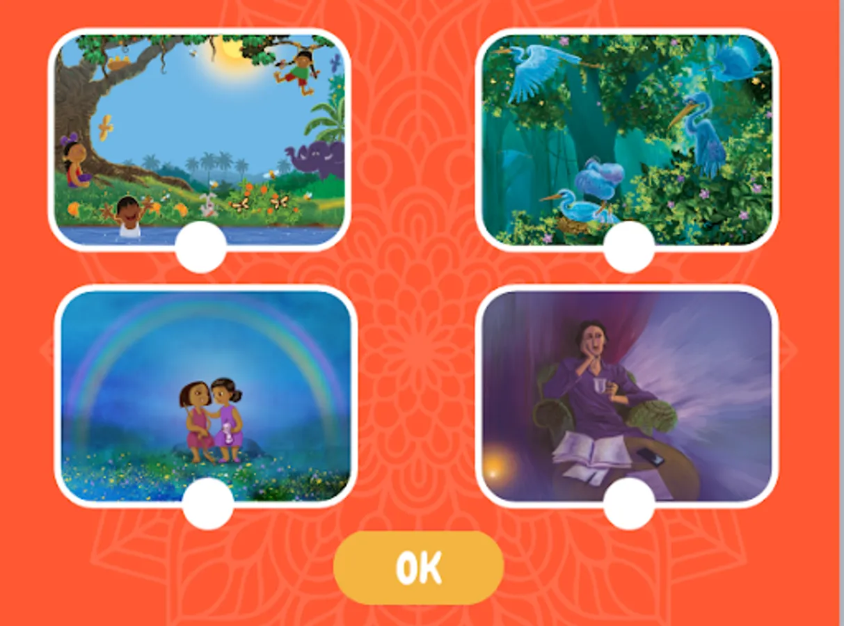 Telling & Illustrated: To cultivate generosity, compassion, caring for nature and acting in unity. As a reward of playing your children receive a beautiful moment of sharing 4 stories of their choice each time they play.