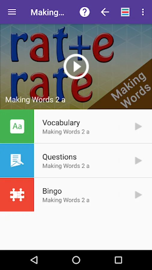 - Complete instruction of the alphabet sounds and of word-building skill with short, engaging videos.