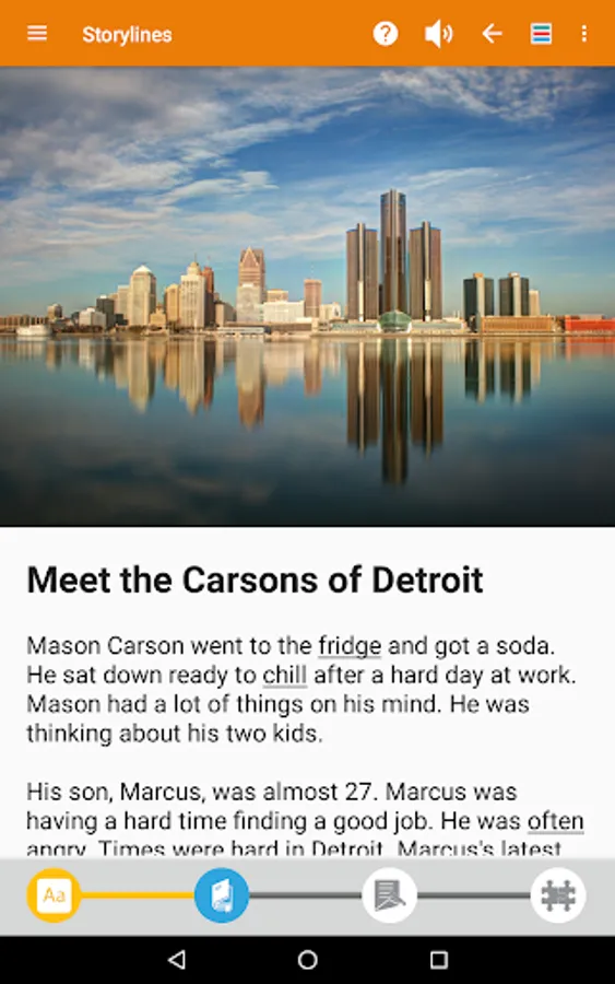 Lessons start with learning letter sounds and continue to multi-page stories and articles, with vocabulary support in English and Spanish.
